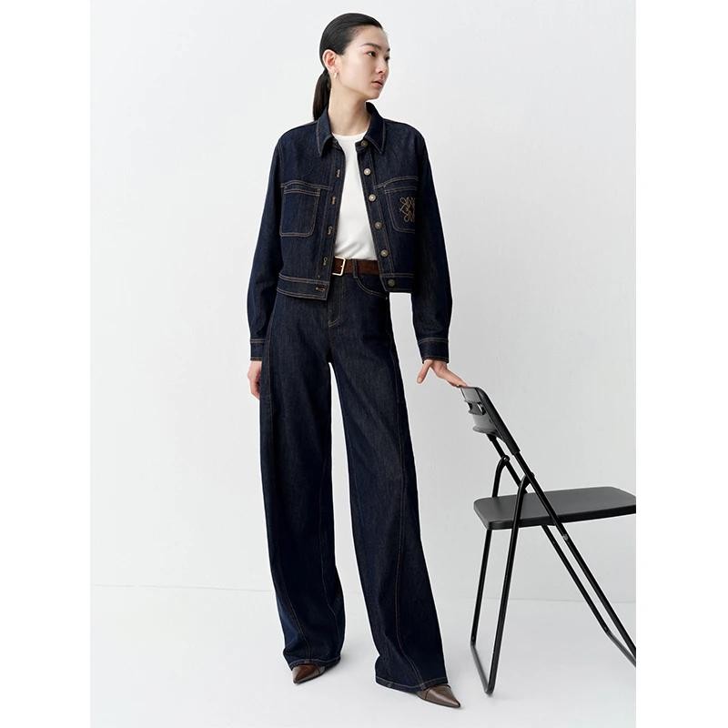 艾诺丝尚忆商场同款2025秋季新款复古直筒丹宁阔腿牛仔裤女323109