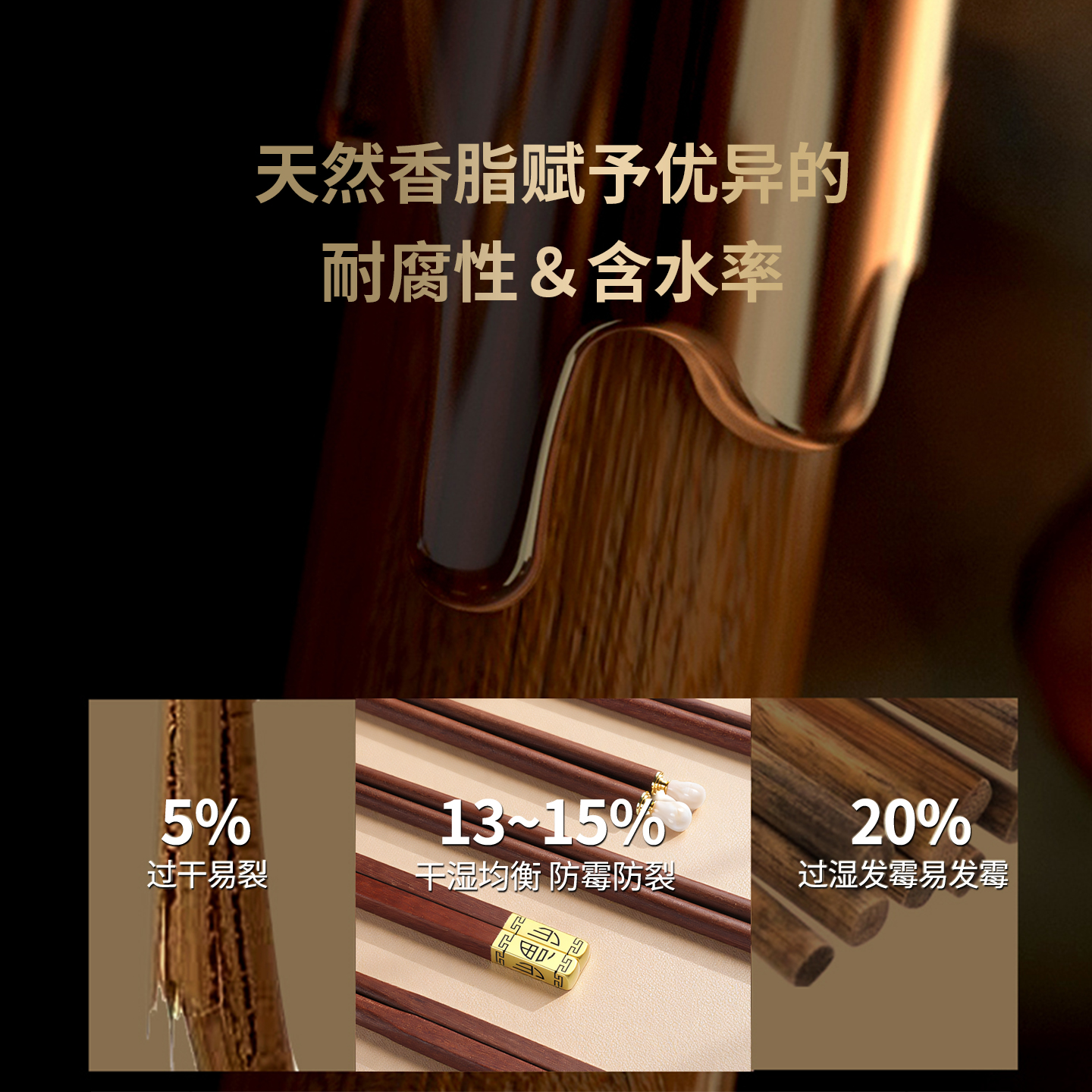 利瓷鸡翅木筷子家用防滑防霉木质快子10双20双家庭套装木箸