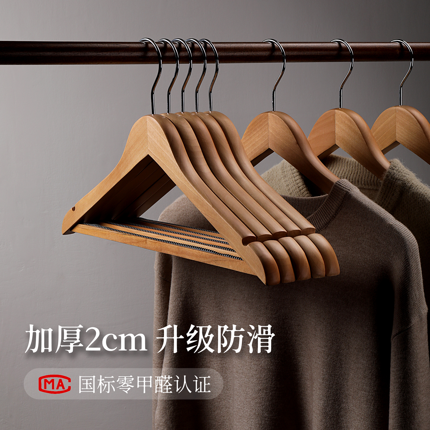 加厚实木衣架家用挂衣无痕木质木头衣挂衣柜衣服撑子衣撑挂子防滑