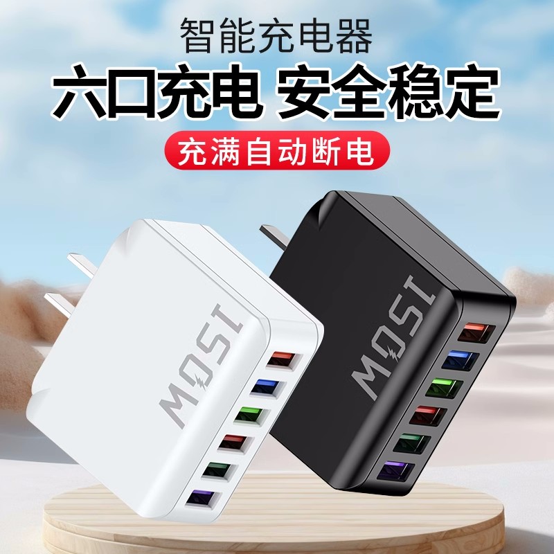 150W充电头大功率多口usb插口智能断电快充头六口同时充电智能快充适用苹果安卓华为小米通用手机充电器套装