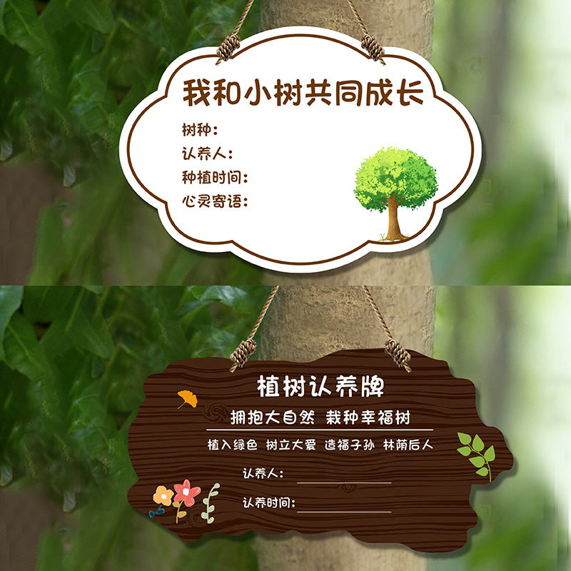 植树节挂牌定制树木认养认领牌树苗保护树木班级树牌小树木幼儿园挂牌和小树一起成长标语标识牌提示牌