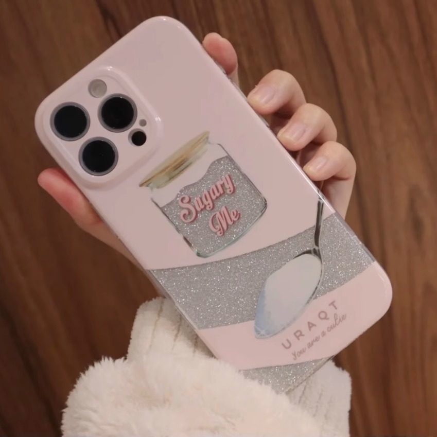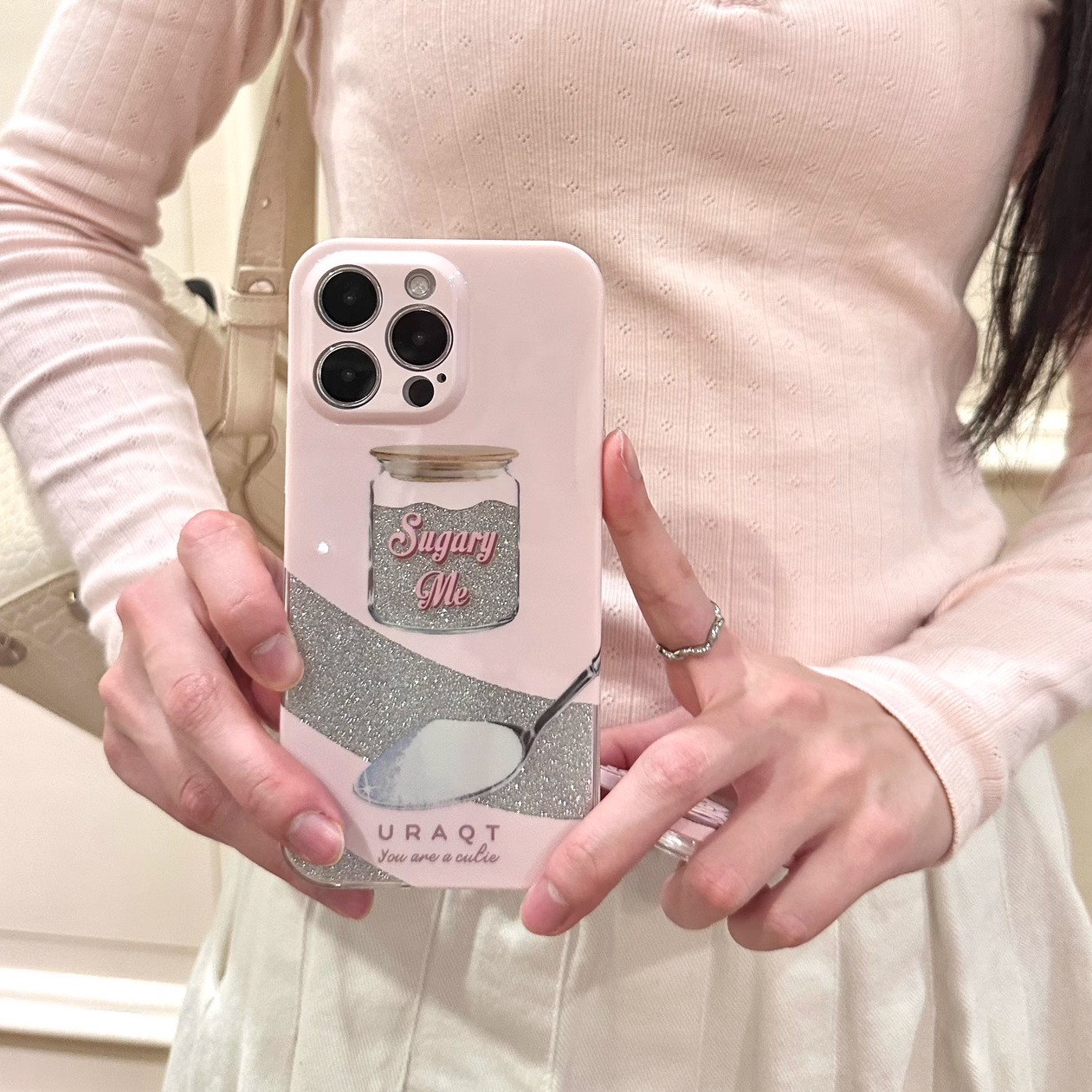 URAQT原创可爱糖罐【甜蜜如我】适用iPhone16promax精孔15闪粉流沙粉色手机壳