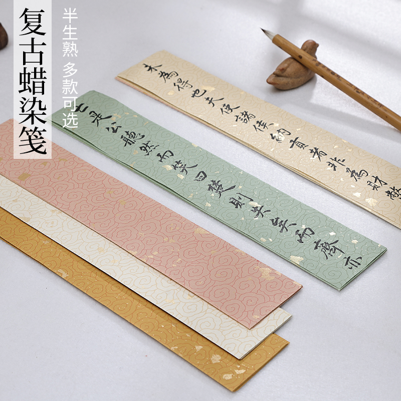 一笔笺书法小纸条临帖纸小作品字帖近距离对临纸手机壳彩色宣纸叶纹祥云绛云笺洒金半生熟小楷瘦金体毛笔日课