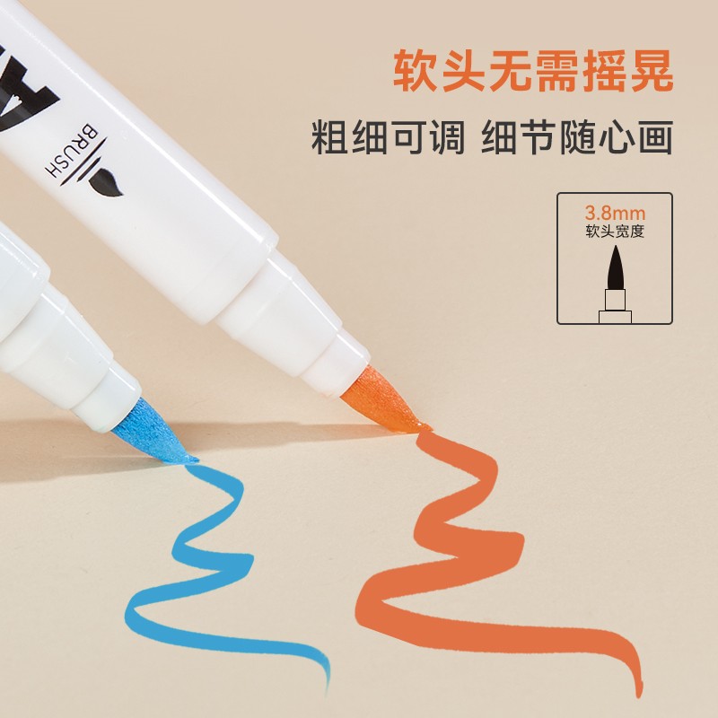 软硬双头丙烯马克笔不透色可叠色软头水彩笔初中生小学生美术专用儿童无毒可水洗画画笔48色笔芯彩色笔36细头