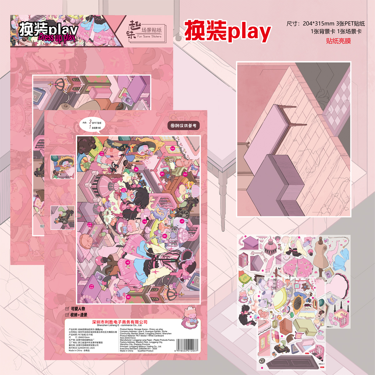 送镊子)造景贴纸微缩场景合集本贴纸本立体换装贴纸女孩儿童diy防水贴画亲子小游戏解压小屋玩具装饰小图案