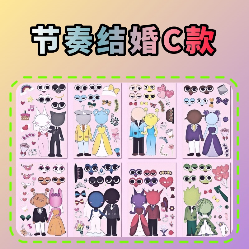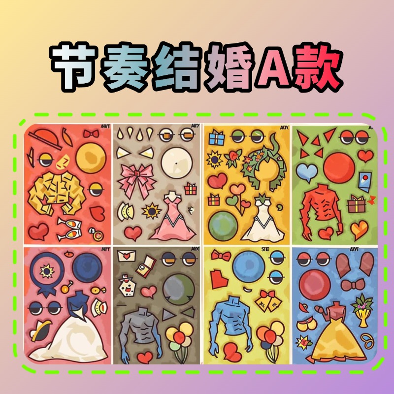 节奏盒子结婚换装贴纸卡通图案可爱益智diy粘贴画儿童玩具安静书