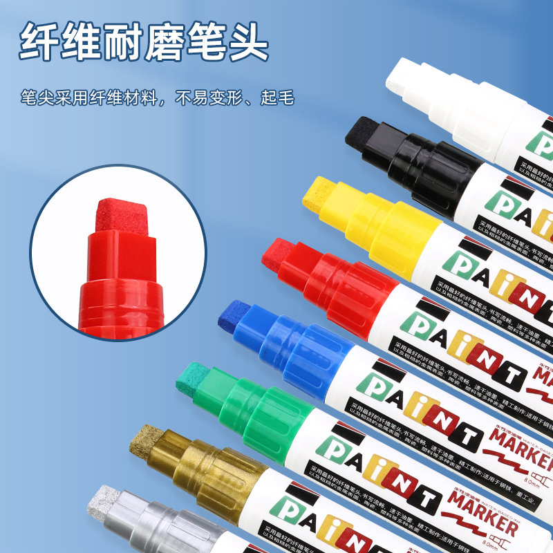 白色油漆笔防水防油不掉色记号笔白色补漆笔油性汽车描轮胎笔工地专用黑色工业速干白漆大头笔涂鸦描边标记笔