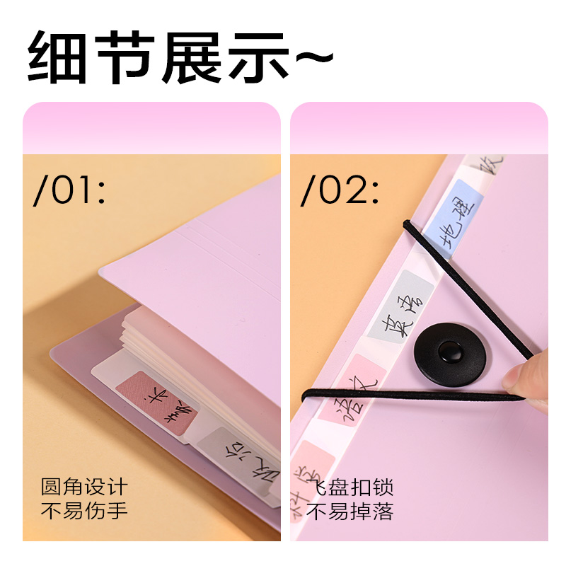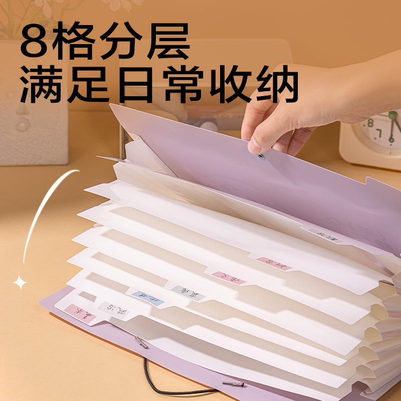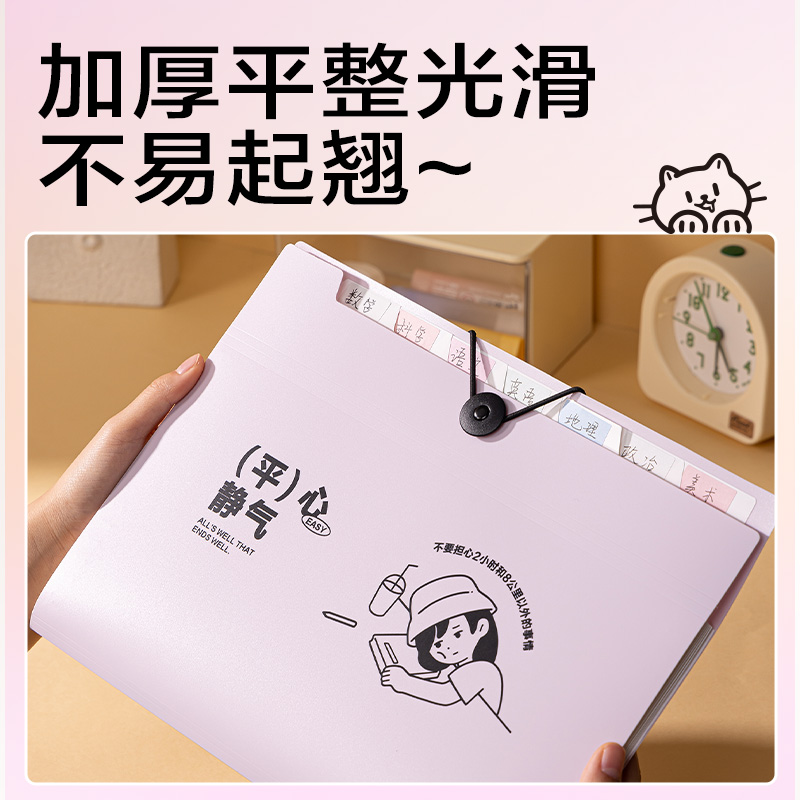 得力线条独白系列竖式风琴包a4文件袋收纳包试卷收纳袋初中生大容量手提试卷夹高中生卷子收纳分类资料分类