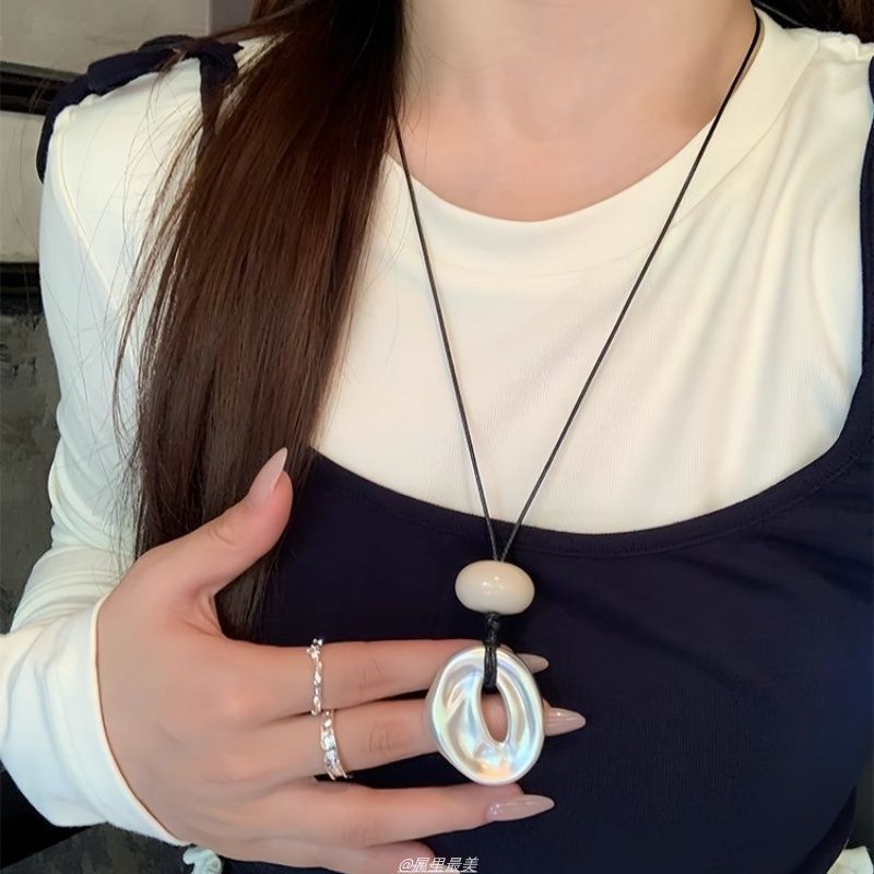 施家真多麻灰色珍珠项链颈链轻奢小众毛衣链配饰女款2025新款爆款
