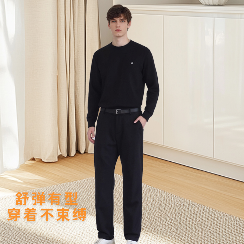花花公子男士西裤春秋季直筒宽松大码商务黑色秋冬休闲长裤男弹力