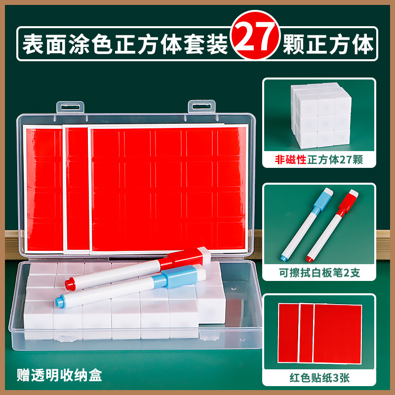 小学生磁性正方体教具表面涂色磁性正方体27个小方块立方体磁吸式六面磁性从不同方向观察物体主视图左视图