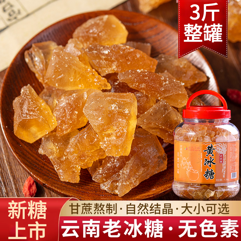 云南小粒黄冰糖3斤罐装老黄冰糖块泡茶酒纯蔗糖手工多晶冰糖批发