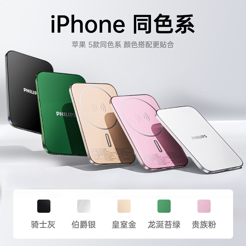 飞利浦DLP9505无线磁吸充电宝5000mAh超薄充电小巧移动电源可登机适用于苹果iPhone17系列国标3C认证2025新款