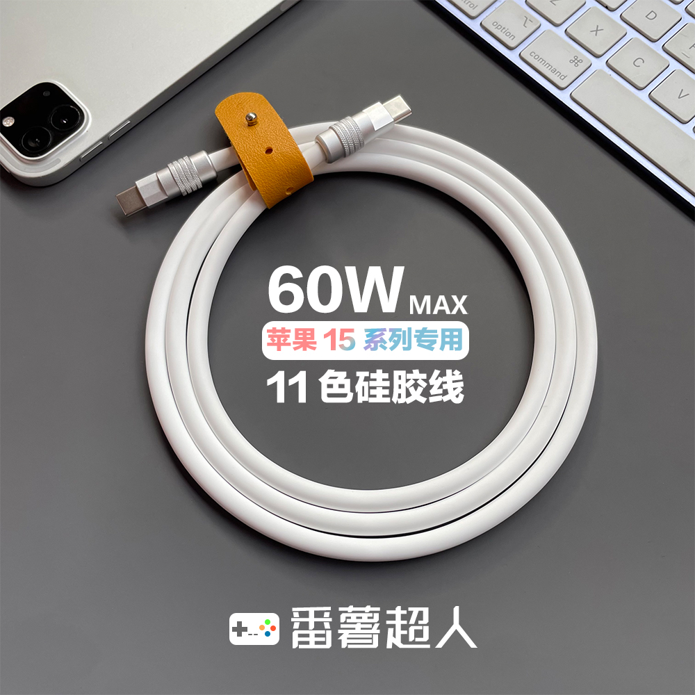 番薯超人 适用苹果手机iPhone15系列60W手工diy数据线快充PD客制化Type-C对C超柔软液态硅胶车载手机充电线