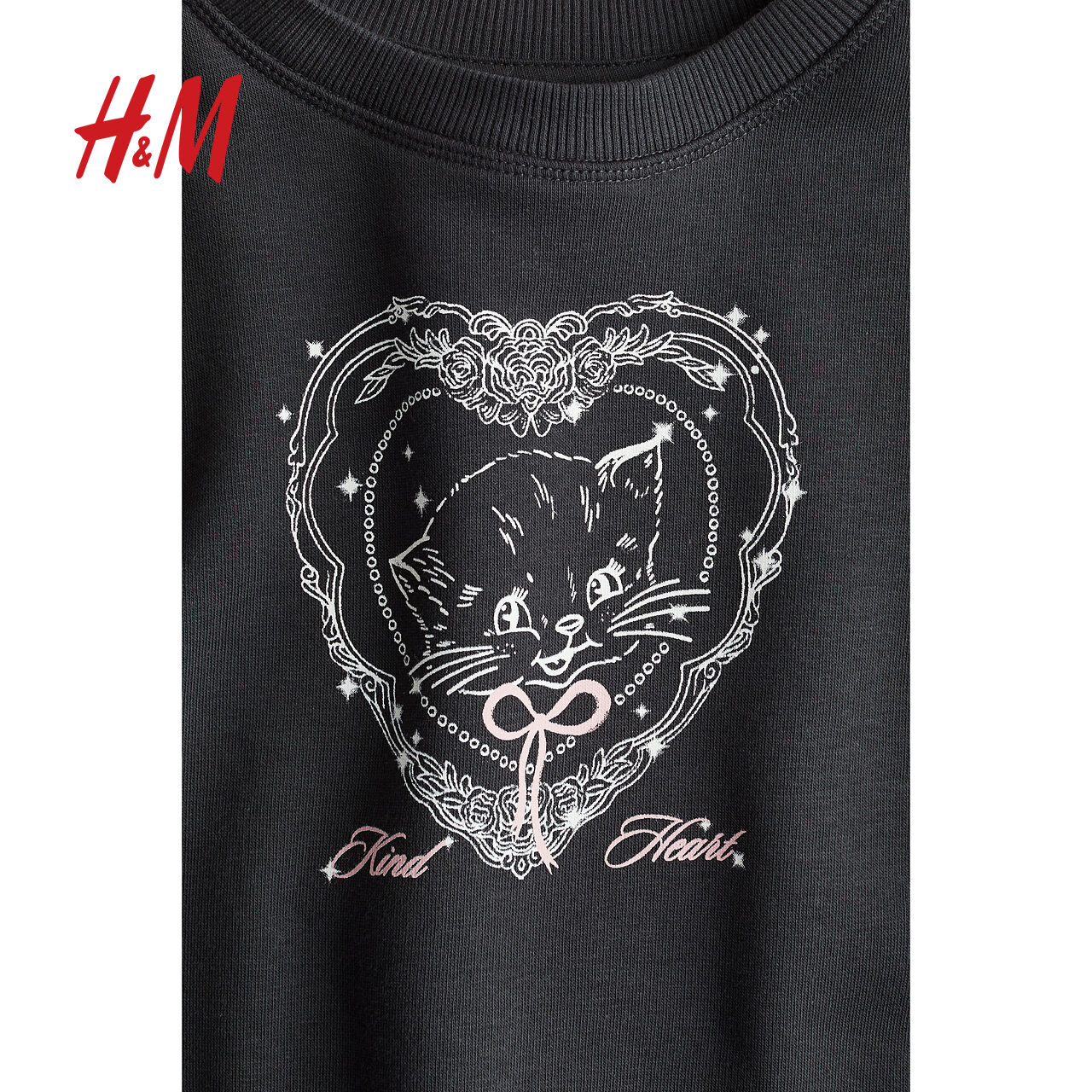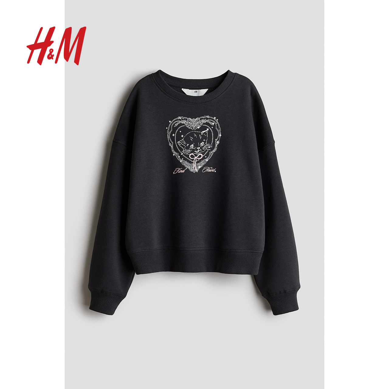 HM女童卫衣秋季童装儿童印花圆领大廓形上衣1246194