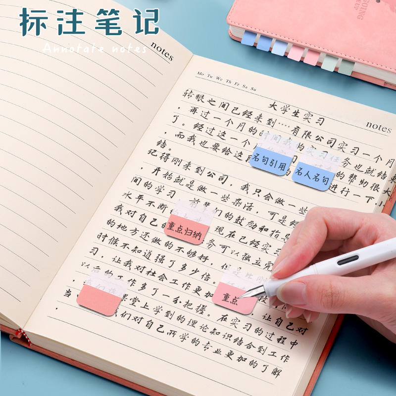 索引贴标签贴纸初高中标记重点学生可书写粘性强书签莫兰迪色便利贴小条分类指示引索贴文具办公用品书写标记