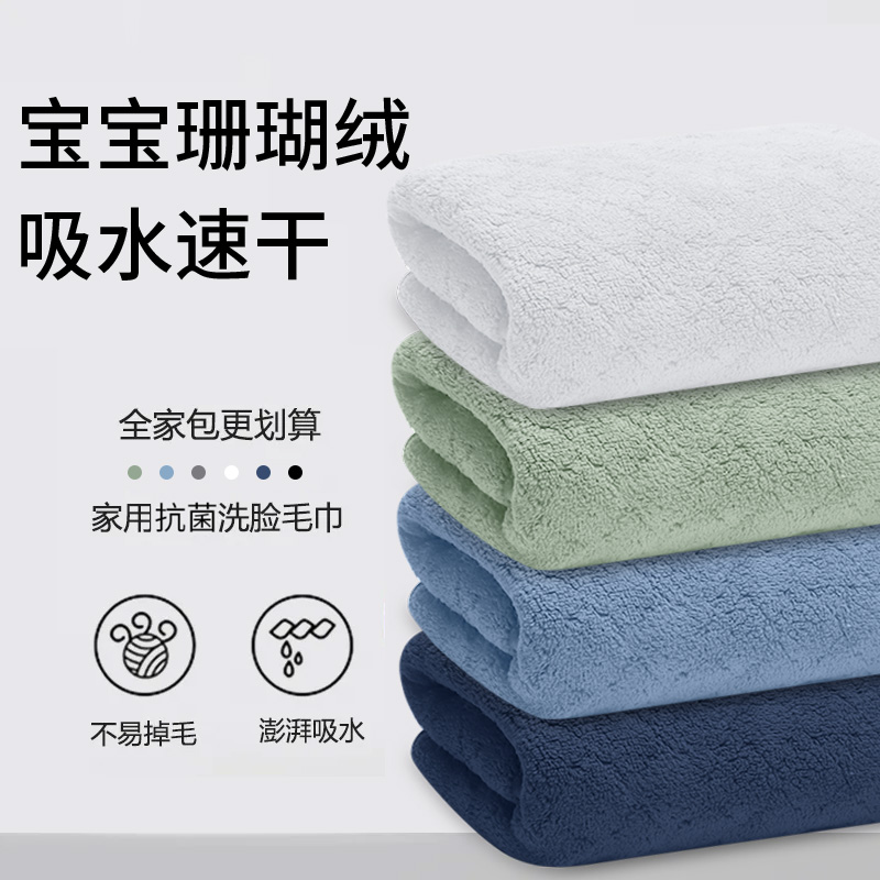 加厚毛巾家用柔软吸水不掉毛儿童洗脸巾珊瑚绒大成人男女洗澡速干