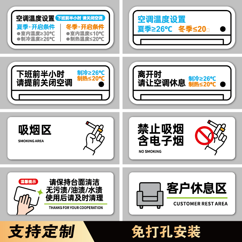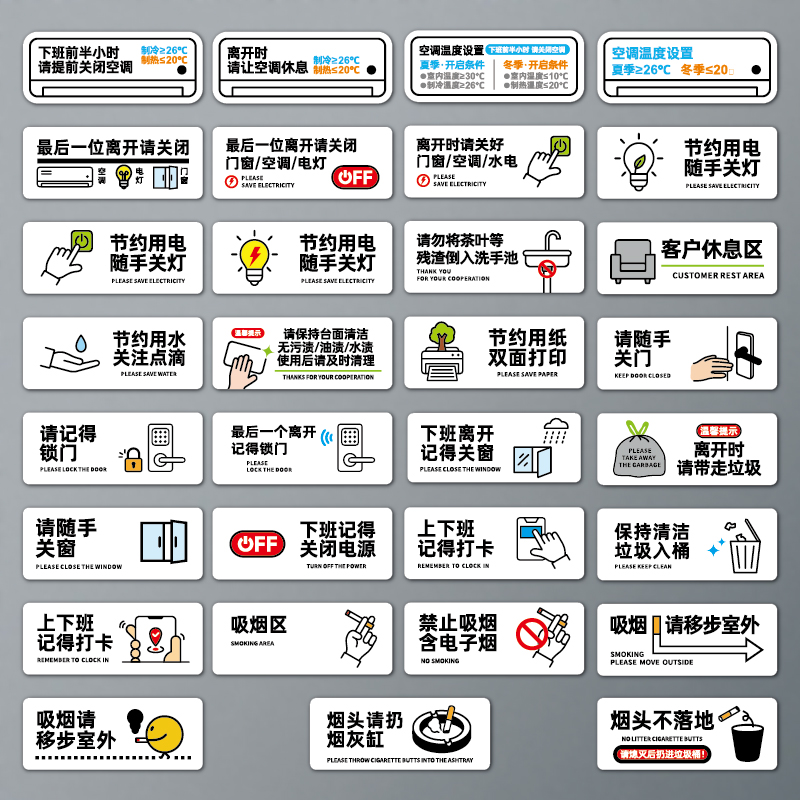 亚克力贴上下班请打卡离开请关好空调门窗电灯电源随手关门提示牌吸烟请移步室外烟头请扔烟灰缸不落地警示牌
