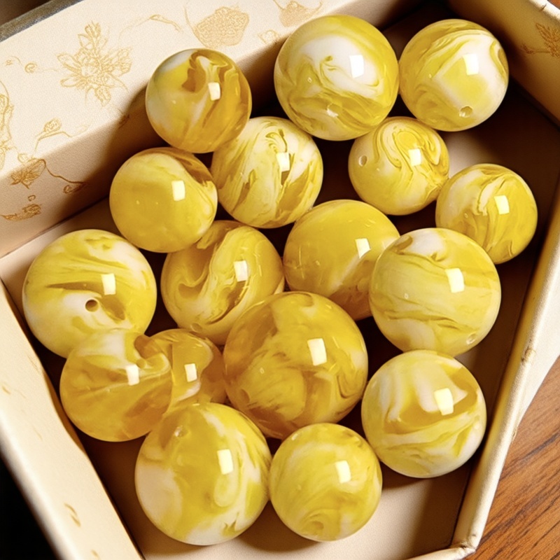 鸡油黄白花高油二代琥珀蜜蜡黄天然黄飘圆珠diy散珠文玩配饰佛珠