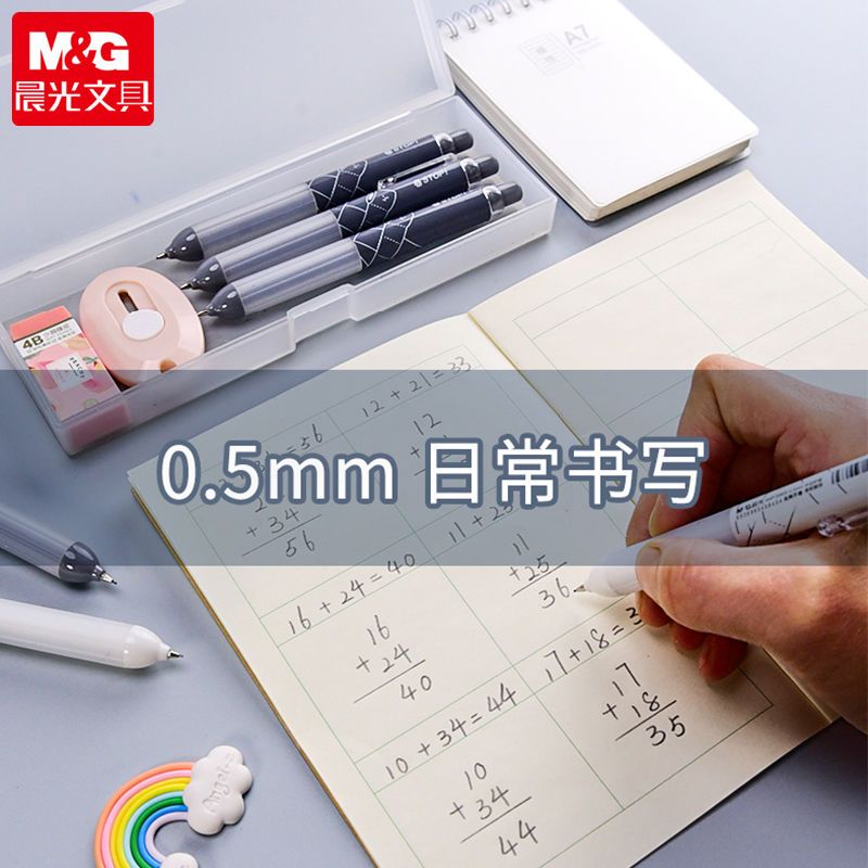 晨光大容量自动铅笔套装小学生专用高颜值0.5mm大墨王活动铅聚干净橡皮铅芯2b不断芯考试用学生文具套装送礼