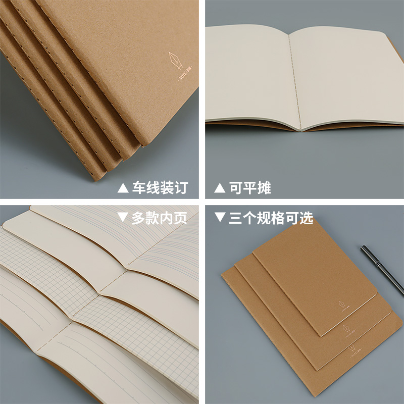 道林本子b5软抄本牛皮纸面a4横线宽行大号车线本草稿a5空白复古简约ins风四线三格英语46张方格16K学生笔记本