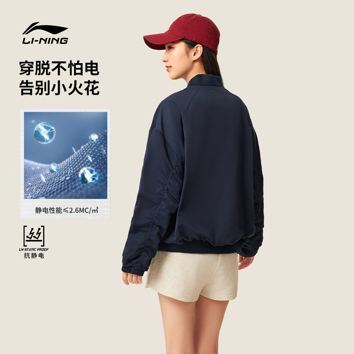 李宁棒球服女秋季新款飞行员教练夹克开衫上衣网球卫衣运动服外套