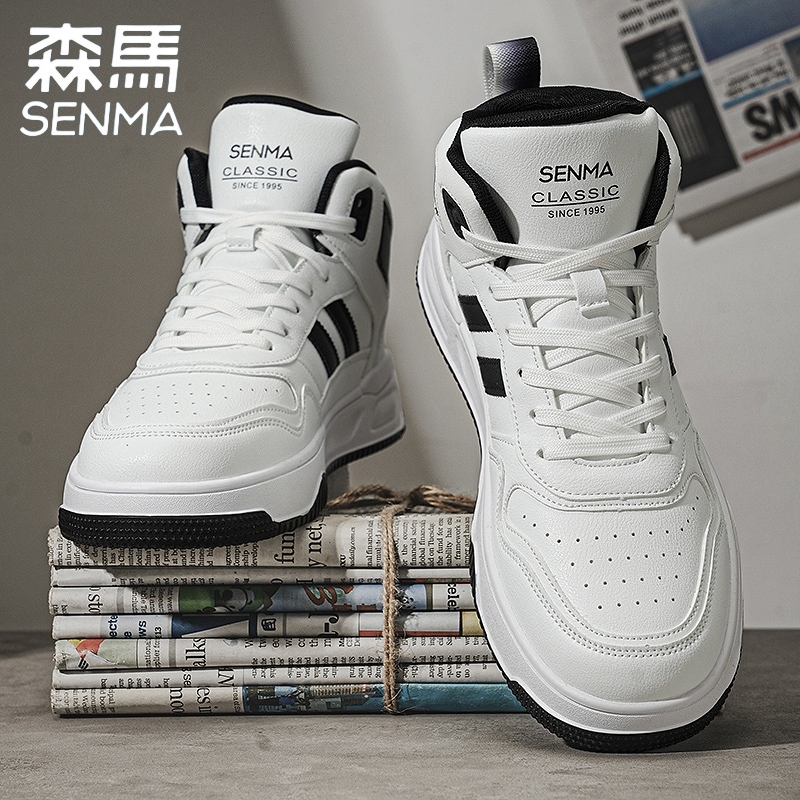 森马高帮男鞋秋季潮流百搭中帮休闲板鞋学生运动真皮增高小白潮鞋