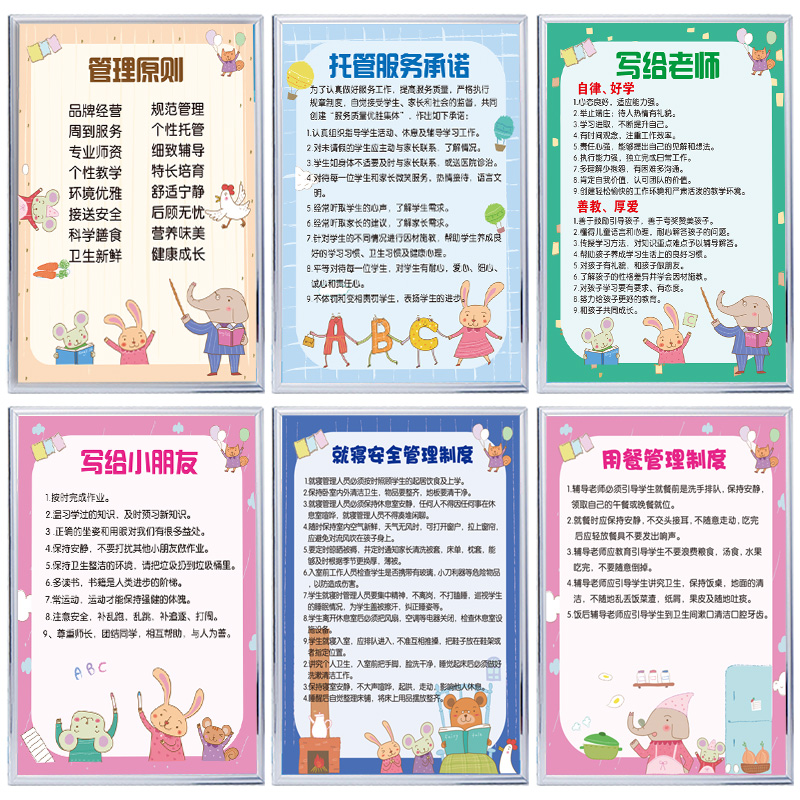托管班管理制度牌幼儿园托管中心管理原则公示栏展示牌托管服务承诺告示牌辅导班小饭桌墙贴作业辅导流程布置