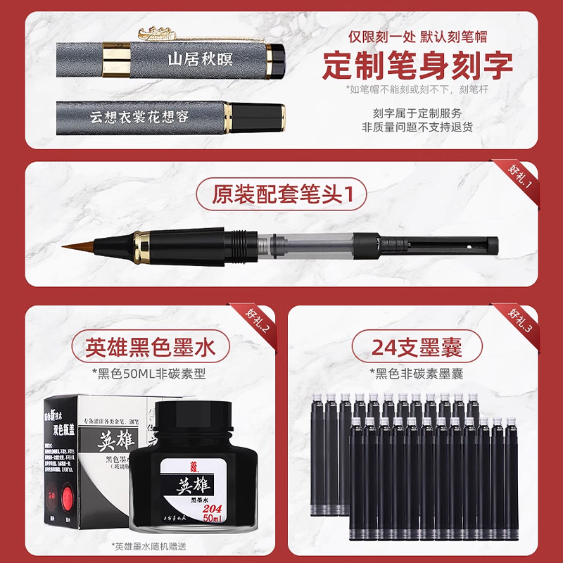英雄钢笔式毛笔小楷软毛笔狼毫兼毫软笔抄经笔练书法笔可加墨水瘦金体便携秀丽笔套装初学者软头笔练字