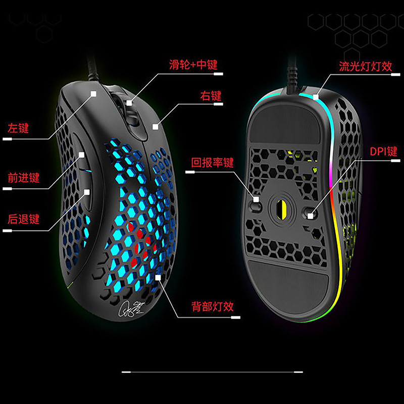 钛度M506逐风者电竞微动鼠标轻量化抗汗个性镂空磨砂可编程呼吸灯