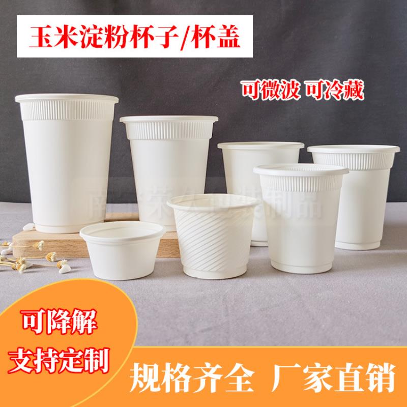 一次性玉米淀粉可降解奶茶杯 咖啡杯带盖 商用冷饮果汁饮料豆浆杯
