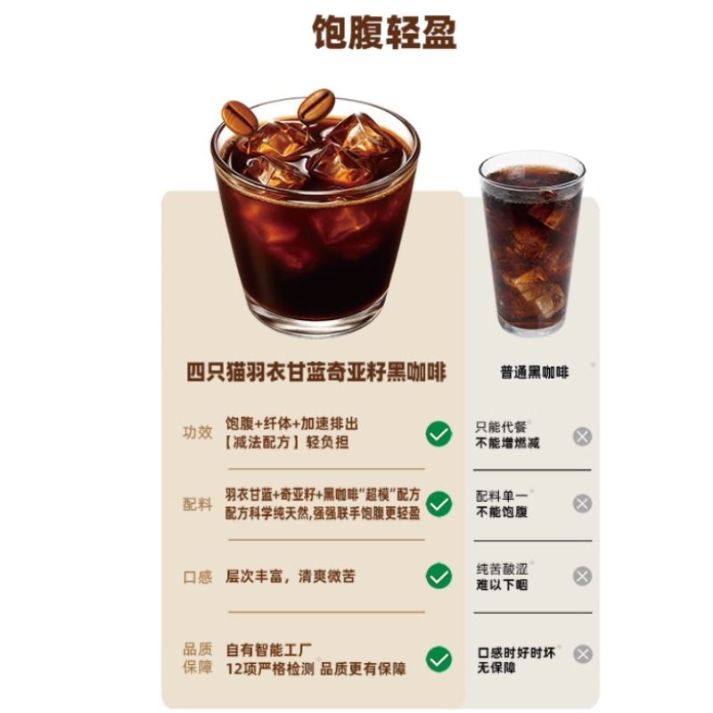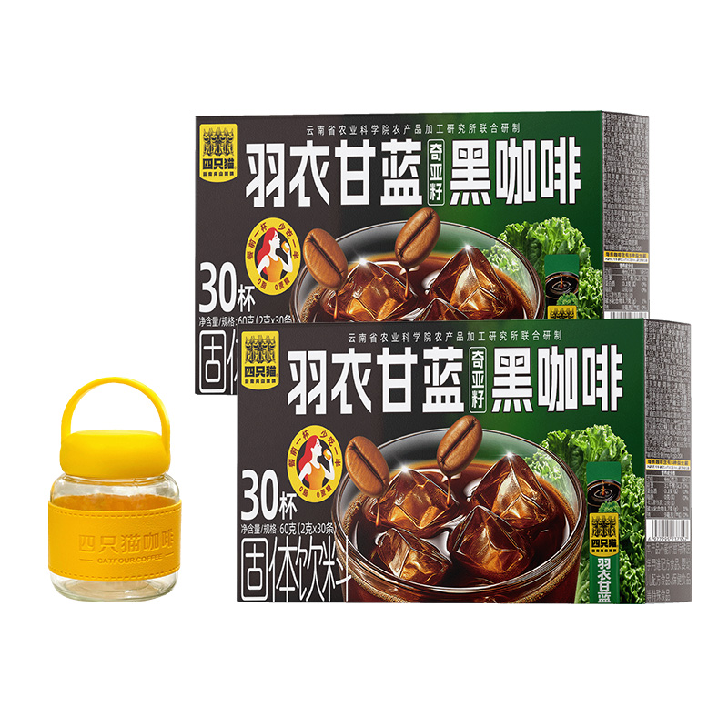 四只猫 0蔗糖0脂肪速溶黑咖啡粉提升减燃肥加速代谢60条送小奶杯
