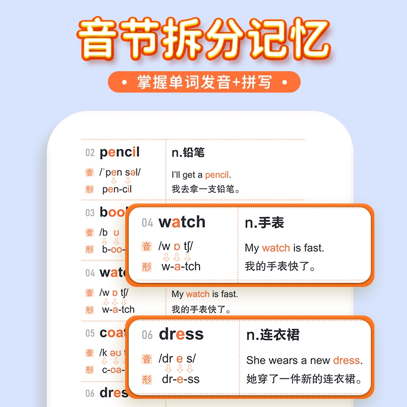 【易蓓】新概念英语1-2册单词口袋书单词书短语句子速记音节拆分日常便携随时学习碎片时间记忆语法背诵神器手册