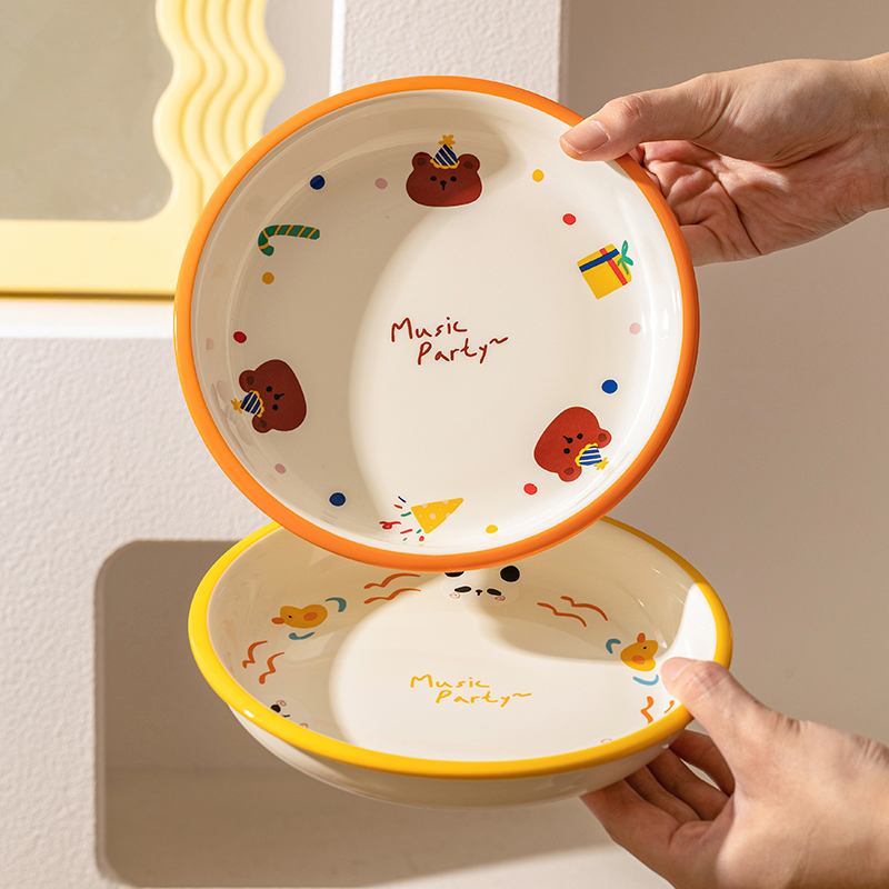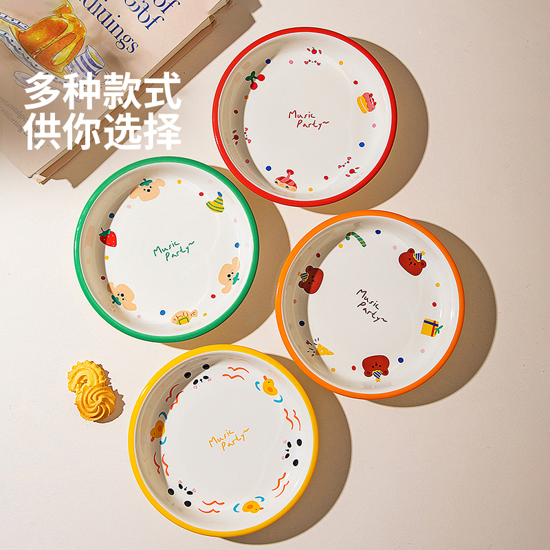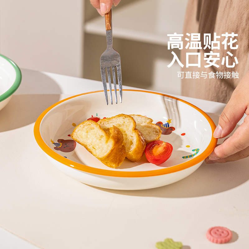 釉下彩陶瓷盘家用菜盘子卡通可爱网红盘碗餐具鱼盘汤碗泡面碗饭碗