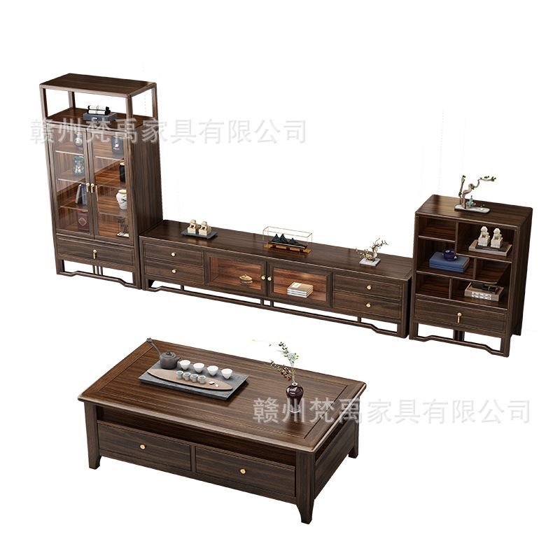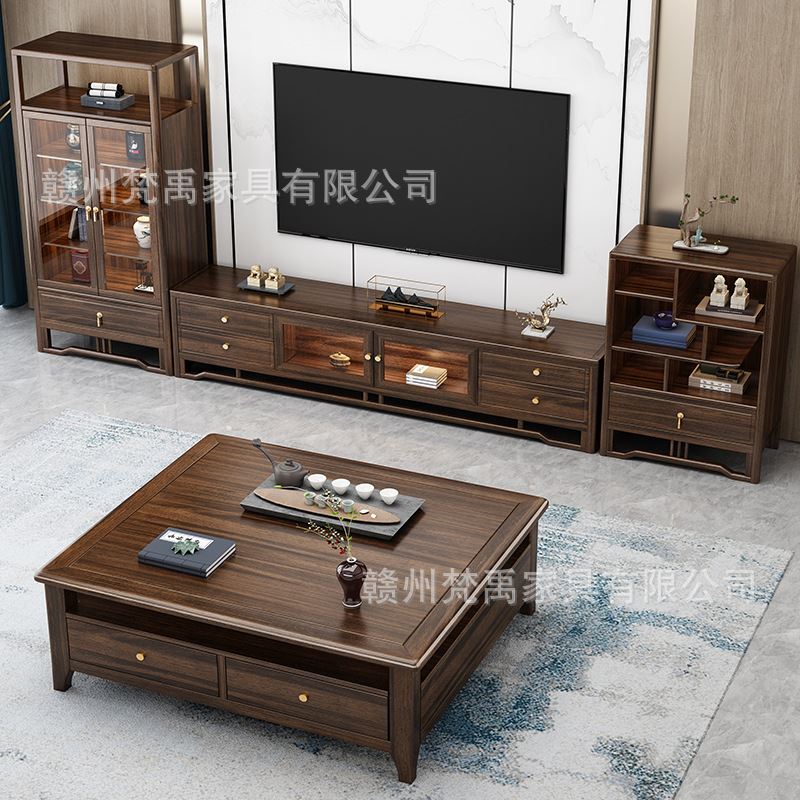 新中式乌金木实木电视柜岩板边柜中柜组合现代简约客厅收纳家具