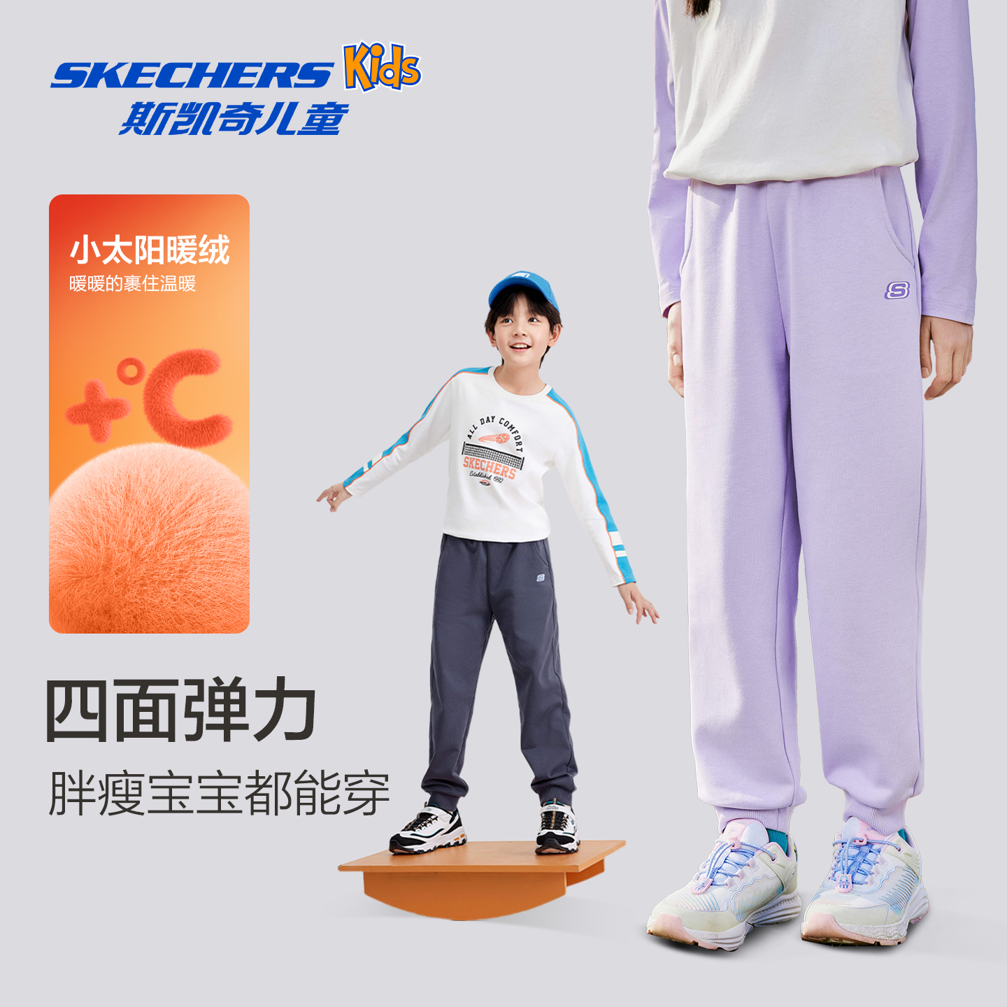 Skechers斯凯奇童装男女童卫裤儿童秋季运动裤青少年加绒针织长裤