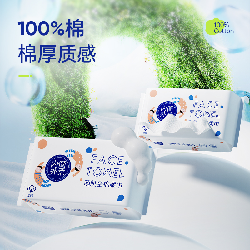 可心柔棉柔巾全棉一次性洗脸巾婴儿宝宝纯棉擦脸干湿两用100抽6包
