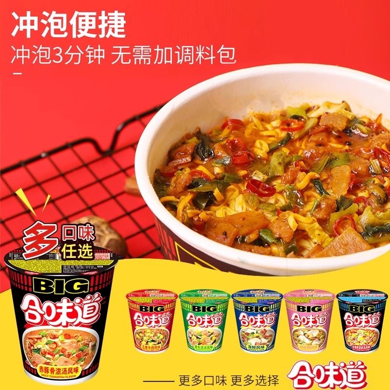 合味道大杯big整箱海鲜猪骨五香桶装宿舍夜宵充饥速食方便泡面