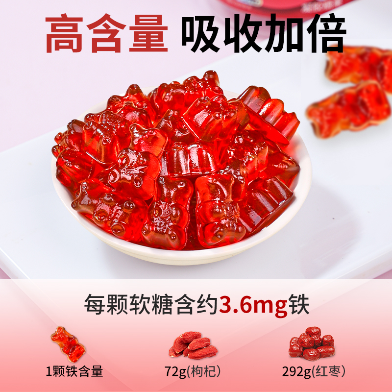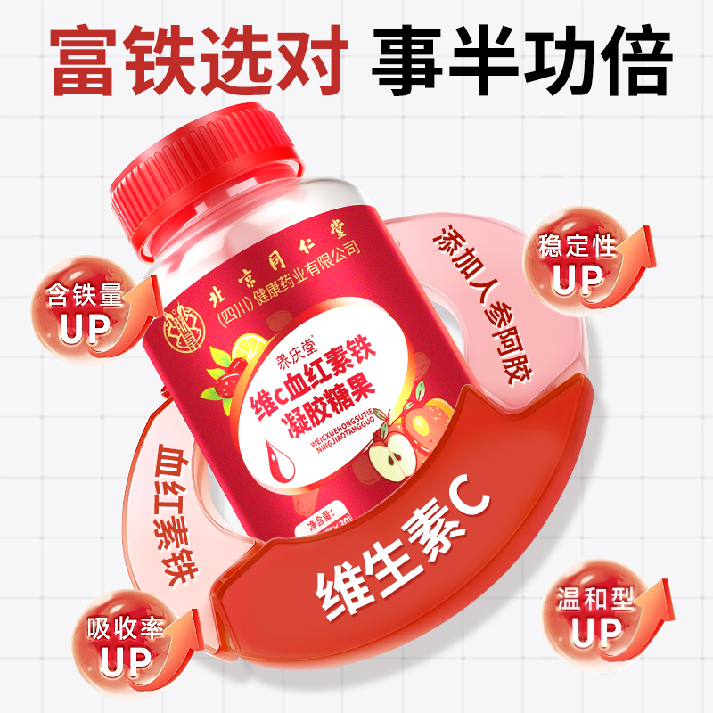 北京同仁堂富铁软糖补铁血红素铁孕妇女性哺乳补血气血儿童铁剂糖
