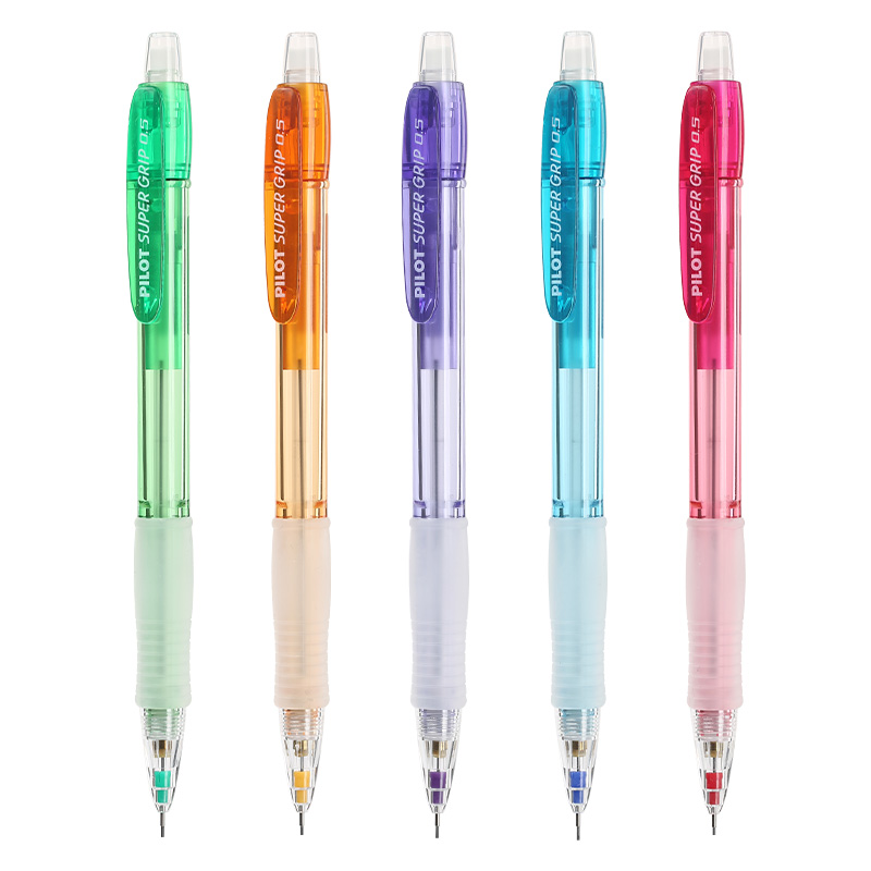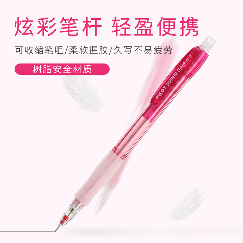 日本PILOT百乐彩色透明自动铅笔H-185N不易断笔芯小学生绘图书写带橡皮擦0.5mm学生考试颜值笔