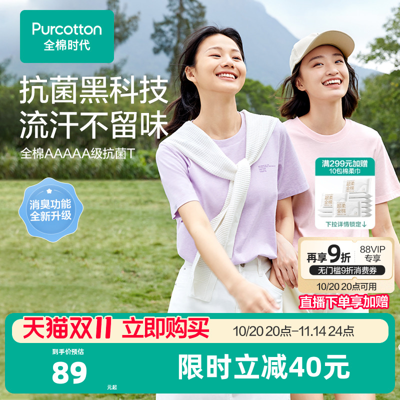 全棉时代短袖T恤女基础上衣男女简约百搭夏季抗菌套头衫纯棉
