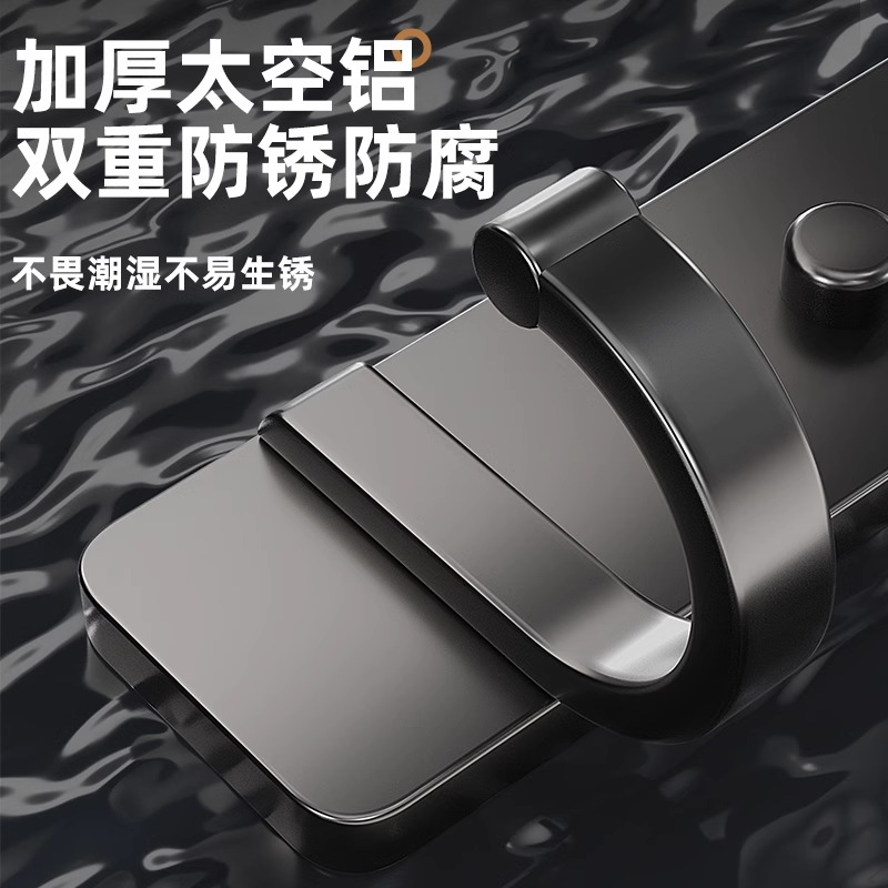 卫生间毛巾架免打孔太空铝挂钩强力厨房衣服门后承重实木置物收纳