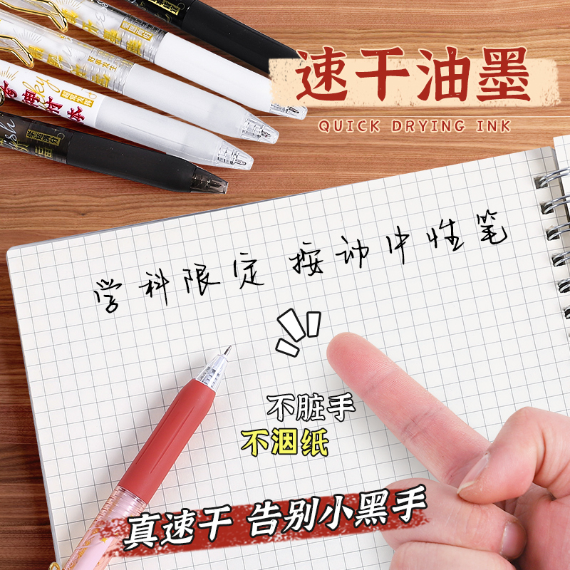 金榜题名按动式中性笔学生黑笔高颜值st笔头速干考试笔快干刷题专用顺滑好用的笔芯CS笔尖签字水笔圆珠笔文具