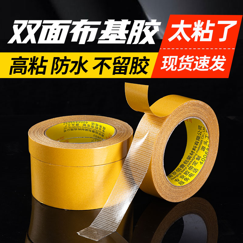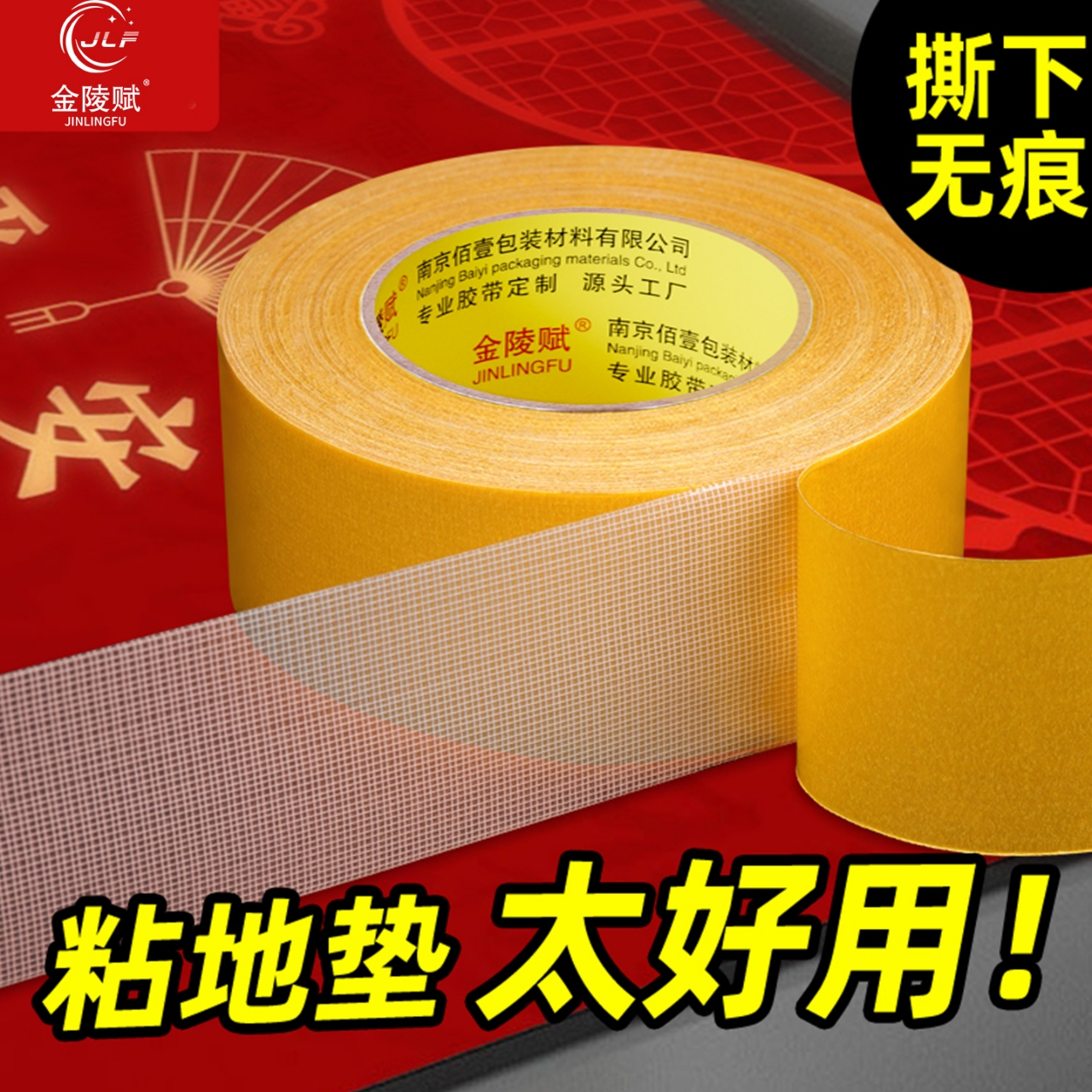 网格双面胶布基双面胶带高粘度无痕强力固定墙面不留痕粘地毯地垫地板透明防水耐高温接缝贴春联福字易撕胶条