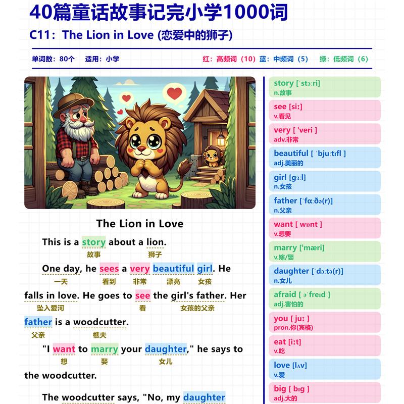 40篇童话故事记完小学1000核心词汇英语语法运用中英文彩印资料