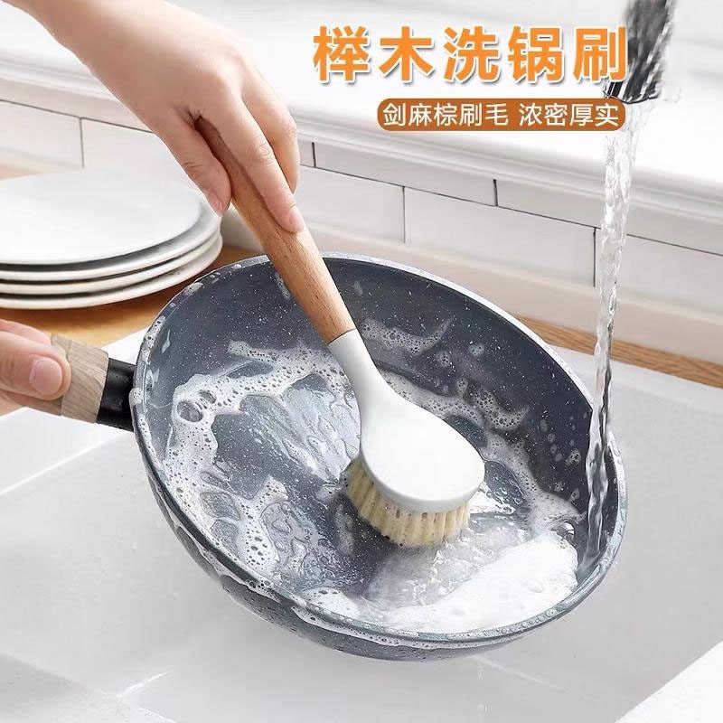 天然椰棕洗锅刷子长柄木柄不伤锅不粘油棕毛刷锅擦锅厨房洗锅神器