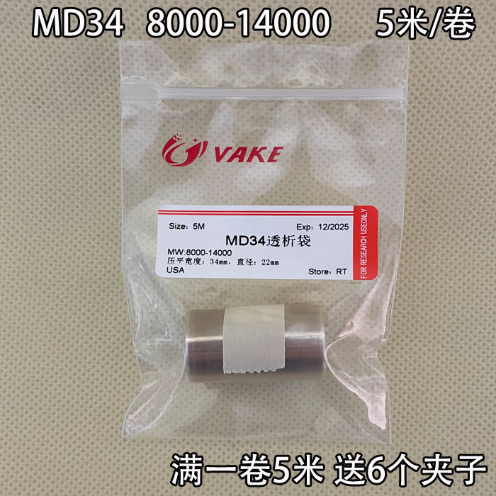 促销MD34透析袋MD44 14000分子量8000 14000蛋白半透膜石墨烯5米