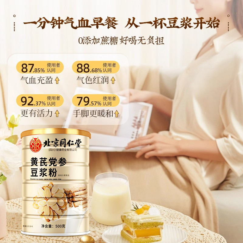 同仁堂黄芪党参豆浆粉无蔗糖低脂补气养血营养早餐即食冲饮原味