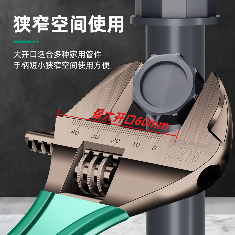多功能卫浴扳手管钳大开口活动扳手万能短柄板手工具活口扳子