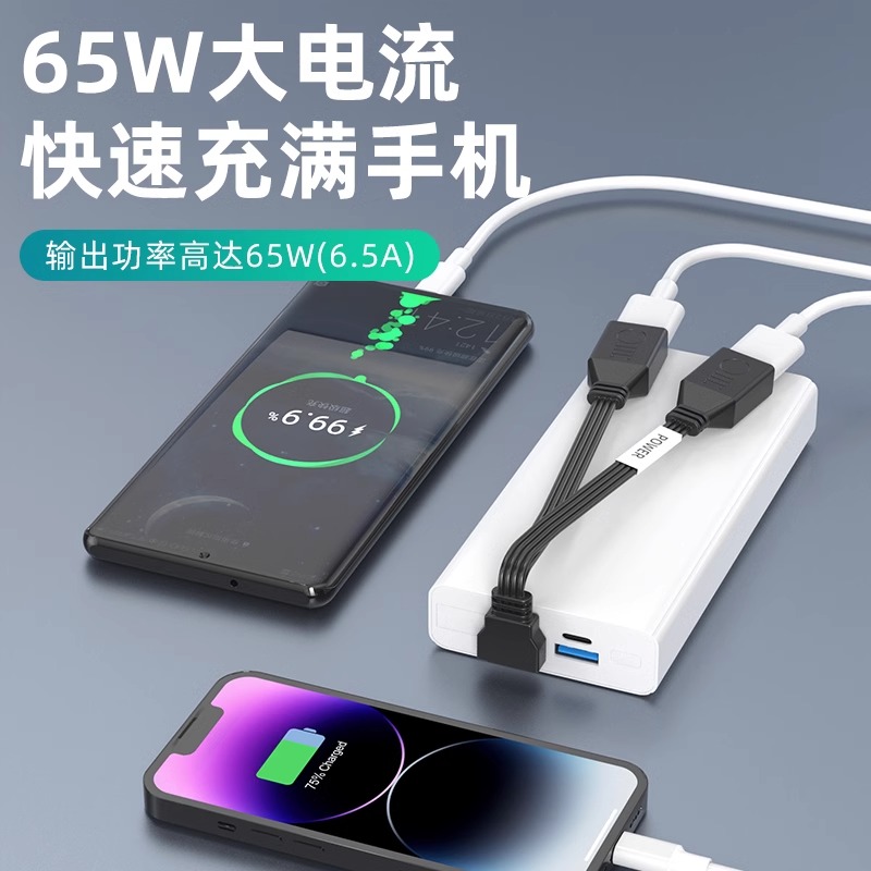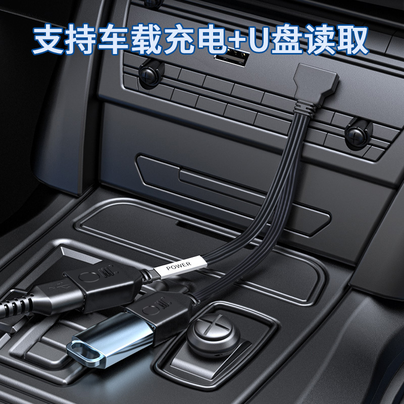 USB延长线一分二插头多口数据转换接头一拖二车载扩展器分线65W快充电源u盘接口连接公对母延伸线扁平传输